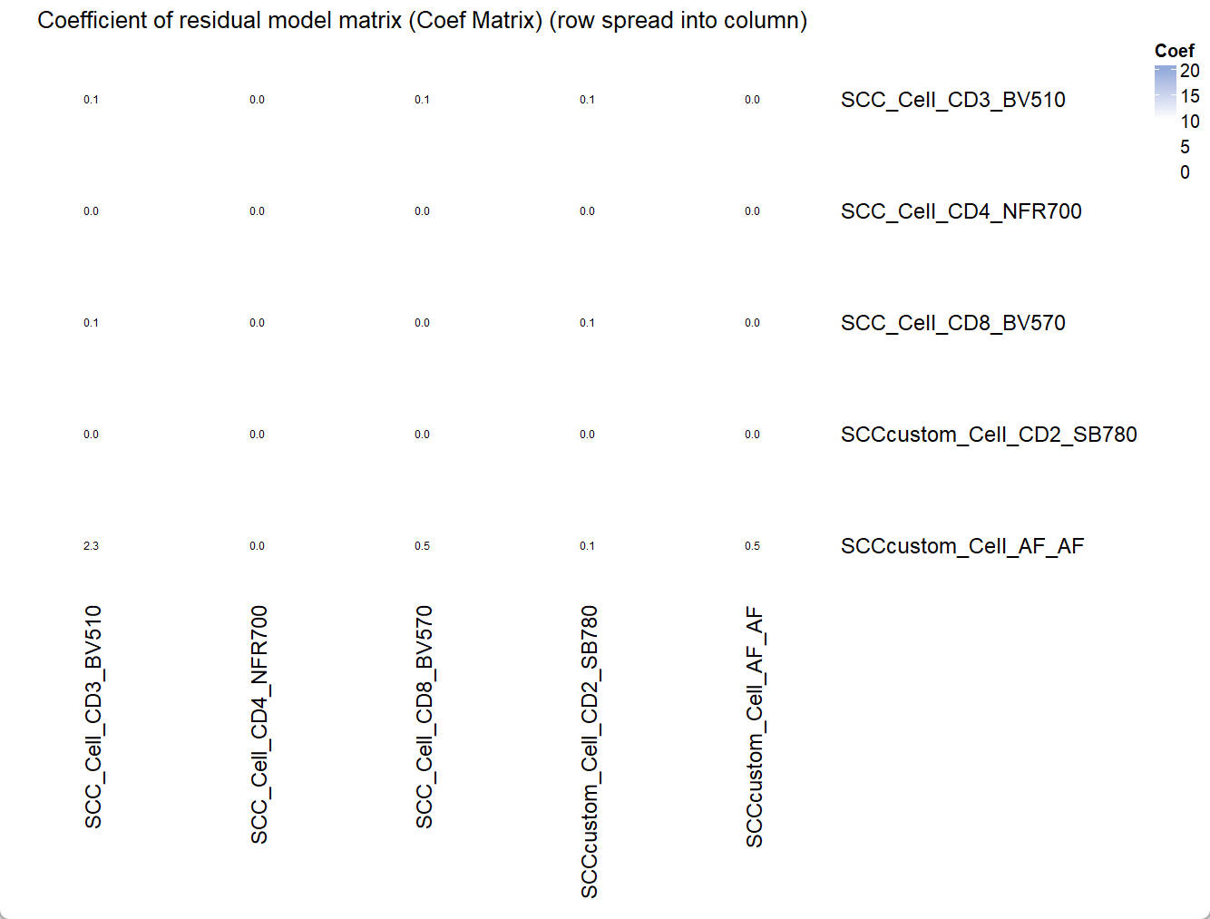 title = "Coefficient of residual model matrix (Coef Matrix) (row spread into column)")