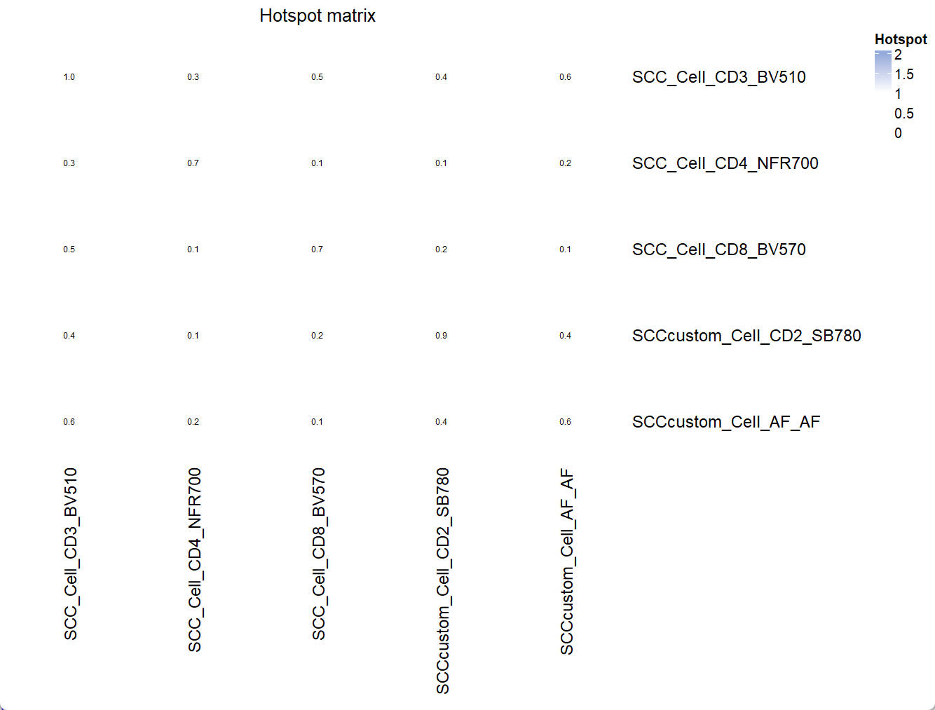Vis_Mtx(mat = Hotspot_mtx,mincolor = "white",midcolor = "white", maxcolor = "#95ABDB",