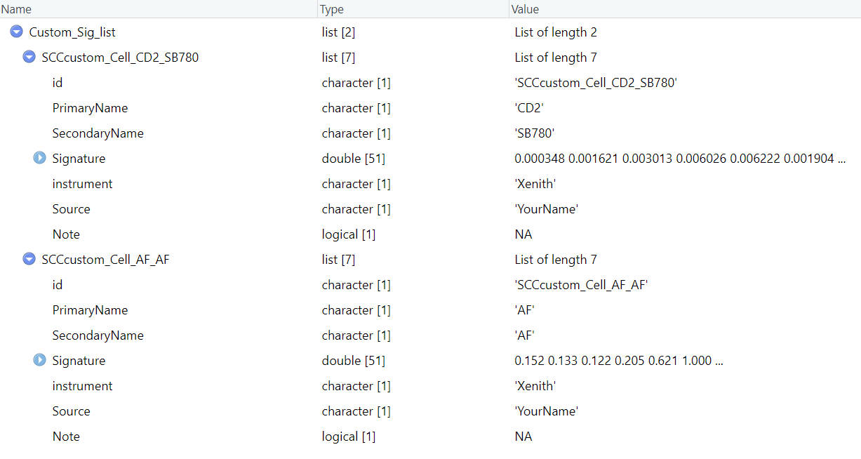 First, read in the Custom_Sig_list.