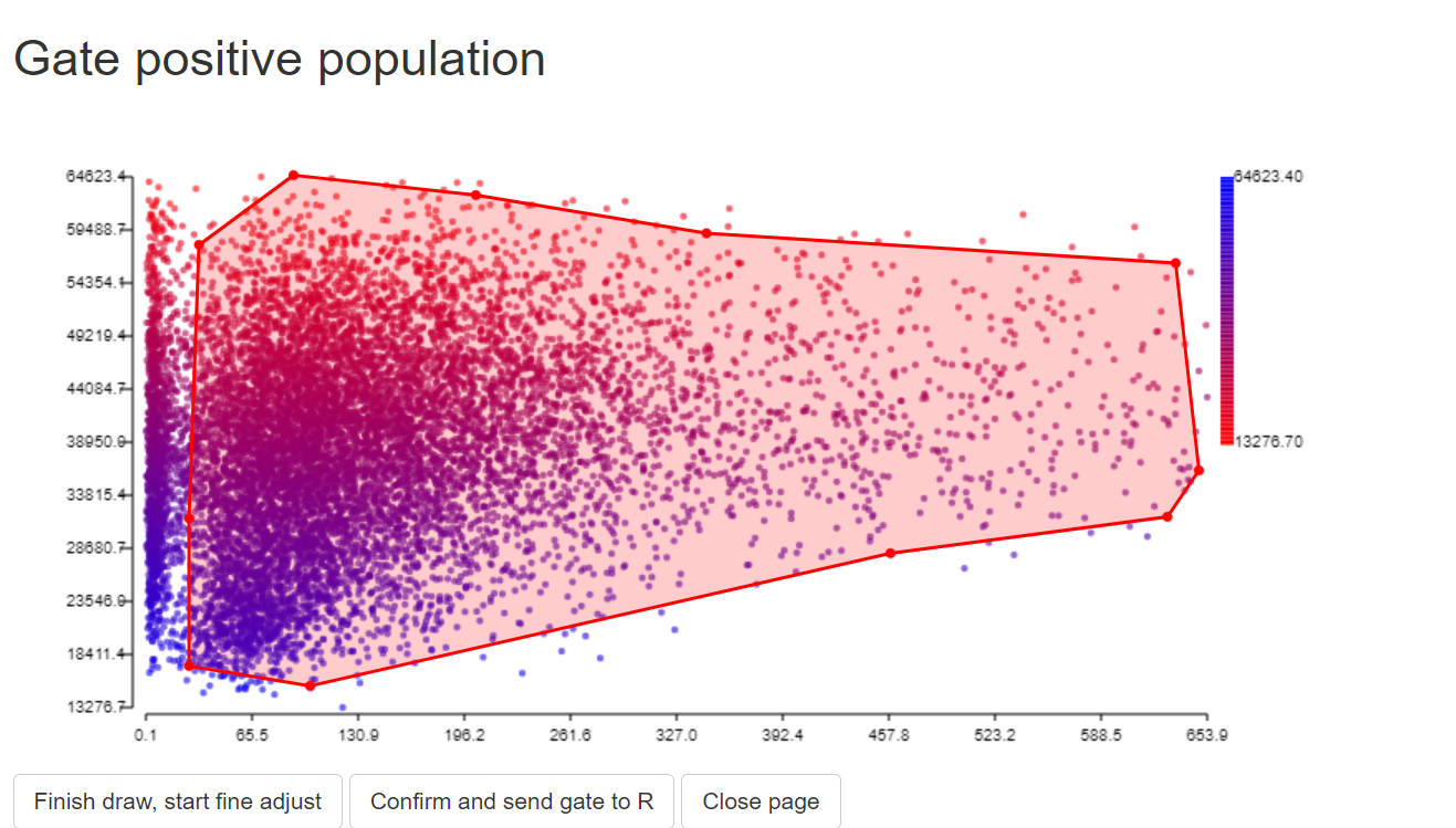 In this step, we need to find positive and negative populations. You can use the GateData R package or other packages that works for you. Here we show how to gate a subset population with the GateData